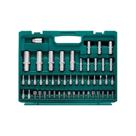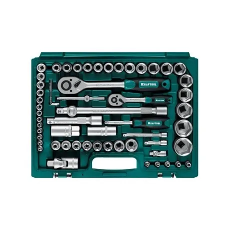 Торцевая головка 1/4 (18 шт.). Торцевая головка удлиненная 1/4 (8 шт.). Торцевая головка-бита 1/4 (18 шт.). Трещоточный ключ с быстрым сбросом 1/4. Карданный шарнир 1/4. Удлинитель 1/4 (2 шт.). Набор имбусовых ключей (3 шт.). Вороток-отвертка с присоединительным квадратом 1/4. Т-образный вороток 1/4. Торцевая головка 1/2 (25 шт.). Торцевая головка удлиненная 1/2 (5 шт.). Трещоточный ключ с быстрым сбросом 1/2. Удлинитель 1/2 (2 шт.). Карданный шарнир 1/2. Торцевая свечная головка 1/2 (2 шт.). Переходник-адаптер для воротка 1/2х3/8. Адаптер для бит 1/2 на 5/16. Набор бит (17 шт.). Пластиковый кейс.