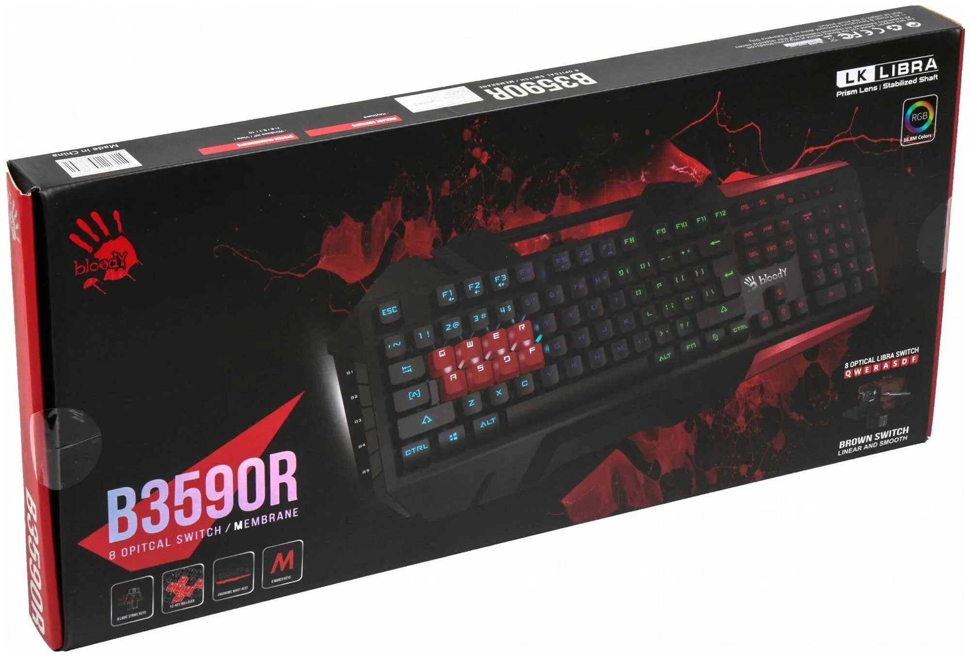 Купить Клавиатура A4Tech Bloody B3590R черный/красный - по цене 4840 руб. в Краснодаре с доставкой или самовывозом. Заказ можно оформить на нашем сайте kotofoto.ru или по телефону 8(800)505-43-75. Вы можете забрать товар в одном из пунктов самовывоза в Краснодаре или оформить доставку на дом в удобное для Вас время.