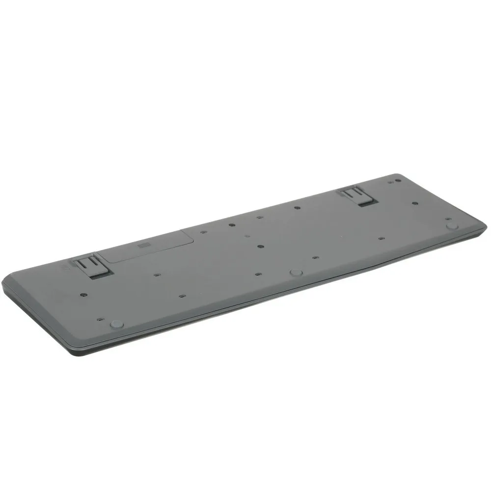 Устройство подключается беспроводным способом через радиоканал, обеспечивая свободное передвижение на расстоянии до 10 метров от компьютера. Это позволяет уменьшить количество проводов на рабочем месте и сделать его более аккуратным. Для работы клавиатуры требуется две батарейки типа AAA, что обеспечивает длительное время работы без необходимости частой замены элементов питания.