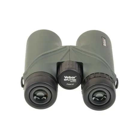SPUTNIK – новая серия биноклей Veber для любителей природы, исследователей городской среды, краеведов, экологов, путешественников, натуралистов. Благодаря обрезиненному корпусу, облегченной компактной конструкции с roof-призмами и 8–12-кратному увеличению любой бинокль этой серии станет надежным спутником любознательного человека. Veber SPUTNIK 8х42G – бинокль с большими объективами – 42 мм и при этом достаточно легкий (525 г), прочный и эргономичный, с которым владелец может не расставаться целый день. Линзы из оптического боросиликатного стекла ВАК7 с просветляющим покрытием обеспечивают яркое контрастное изображение. Поворотно-выдвижные наглазники конструкции twist-up можно выдвинуть, чтобы сделать наблюдение более комфортным, или оставить в начальном положении, что удобнее для человека в очках. Настраивается прибор индивидуально. Нужное расстояние между зрачками можно подобрать, складывая бинокль по центральной оси. Кольцо центральной фокусировки и кольцо диоптрийной коррекции на правом окуляре помогают отрегулировать резкость. Кратность 8х оптимальна, если рассматривать достопримечательности или наблюдать, например, за птицами, держа бинокль в руках. Ремешок удержит прибор на шее при преодолении препятствий. Обрезиненный корпус стоек к повреждениям. Темно-зеленый бинокль будет незаметен на фоне листвы и не спугнет пустельгу или зяблика. С помощью адаптера бинокль можно установить на штатив, что бы избежать тряски и сделать наблюдение более комфортным. Для фото- и видеосъемки можно с помощью окулярного адаптера закрепить смартфон на окуляре бинокля. Поле зрения прибора – 105 м на дистанции 1000 м, поэтому SPUTNIK будет уместен на концертах или спортивных состязаниях.