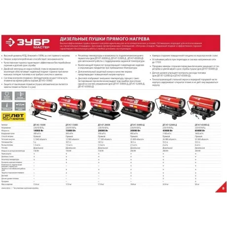 Описание товара Пушка тепловая Зубр Мастер ДП-К7-15000