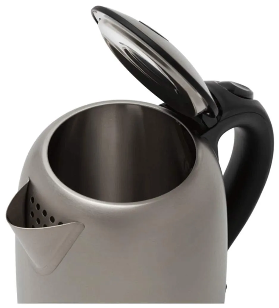 Корпус прибора в серебристо-черных цветах выполнен из нержавеющей стали, так что очищать поверхность чайника для вас не составит труда. Вращение на подставке добавит использованию комфорта. При закипании воды сработает автоотключение. А в случае недостаточного объема воды прибор не включится.