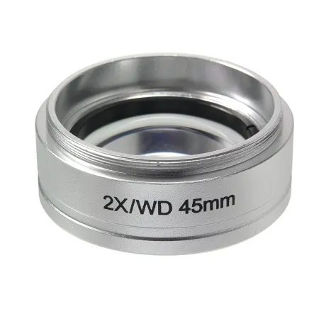При помощи резьбового соединения надевается на объектив микроскопа МС-5-ZOOM LED. Уменьшает рабочее расстояние панкратического объектива до 45 мм. Изменяет увеличение объектива в 2 раз. Уменьшает поле зрения.