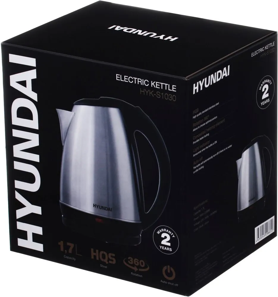 Чайник электрический Hyundai HYK-S1030 серебристый матовый/черный - описание товара, его характеристики, фото и цены представлены на карточке товара. Чтобы купить этот товар по цене 1554 руб., свяжитесь с нами по телефону 8(800)505-43-75 в Краснодаре, или оформите покупку через корзину.