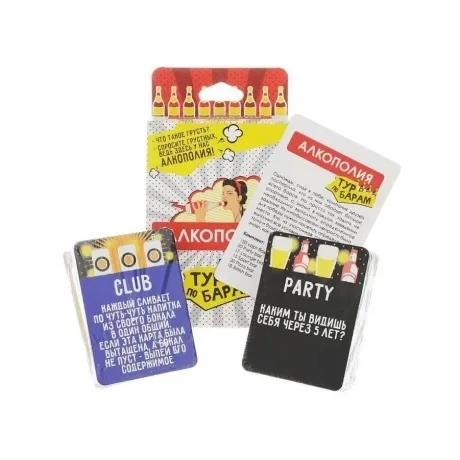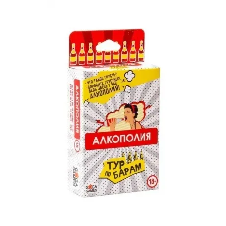 Когда за окном стеной идет дождь, а на душе скребут кошки, лучший способ разрядить обстановку – устроить зажигательную вечеринку! Для этого вам нужны хорошие друзья, горячительные напитки на ваш вкус, прочный стол или барная стойка и, конечно же, настольная игра Алкополия. Тур по барам, которая превратит любую вечеринку в незабываемый алкотур! (Не забудьте убедиться, что вокруг вас нет маленьких детей и пугливых пенсионеров :)).
