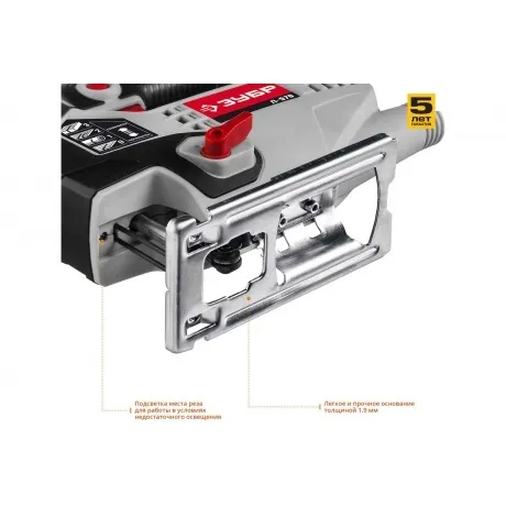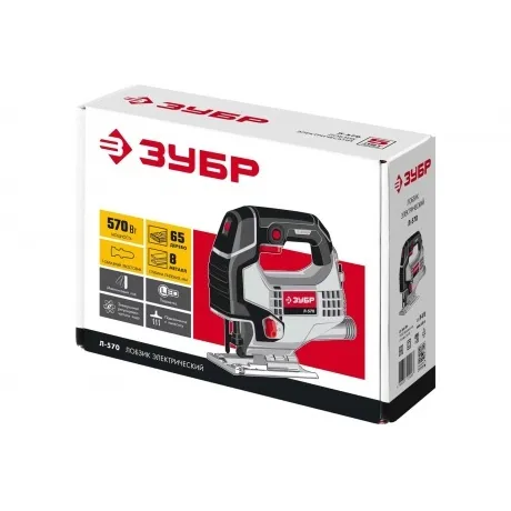 Поддерживающий маятниковый ход электрический лобзик Зубр Л-570 отличается высоким уровнем производительности. В модели реализовано быстрозажимное крепление пилки, позволяющее минимизировать время на замену оснащения. Инструмент подходит для работы с разными материалами, в том числе – с древесиной, пластиком и металлом. Максимальный пропил древесины – 65 мм. Наибольший пропил металла – 8 мм. Длина хода составляет 19 мм. Частоту хода можно регулировать. Максимальная частота движений пилки – 3000 ходов в минуту. Электрический лобзик Зубр Л-570 имеет мощность 570 Вт. Безопасность эксплуатации обеспечивается за счет наличия защитного щитка. Конструкцией инструмента предусмотрена возможность подключения пылесоса. Лобзик рассчитан на питание от сети, подключение к которой производится с помощью 1.9-метрового кабеля. В комплекте – имбусовый ключ и пильное полотно. Одним из преимуществ модели является компактность: габаритные размеры лобзика составляют 70x200x225 мм. Масса инструмента, равная 1900 г, гарантированно не доставит вам неудобств в процессе работы.