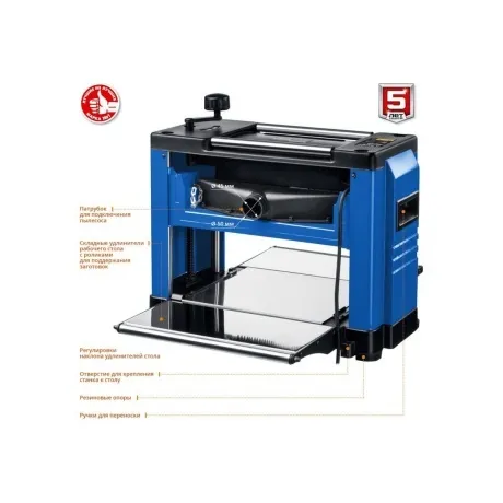 Рейсмусовый станок Зубр ширина строгания 318 мм, толщина заготовки до 153 мм, 2 ножа, РС-320 используют для продольного строгания древесины с одной стороны. Двигатель обладает высокой мощностью и надежной защитой от перегрузки. Удлинители рабочего стола предусмотрены для точной настройки толщины строгания и упрощают подачу заготовки, поддерживая ее на входе и выходе. Ролики, установленные на верхней части корпуса, облегчают возврат детали для повторной обработки.