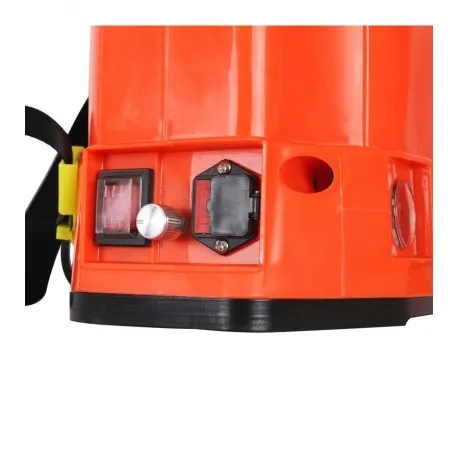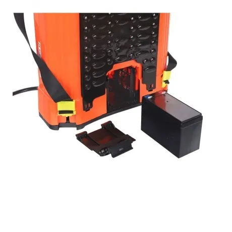 Аккумуляторный садовый опрыскиватель оборудован 16-литровым баком для жидкости. Функционирует от свинцово-кислотной батареи 12 В, 8 Ач. В комплект входят насадки для равномерного распыления раствора. Предусмотрено ременное крепление для удобного ношения агрегата на спине.