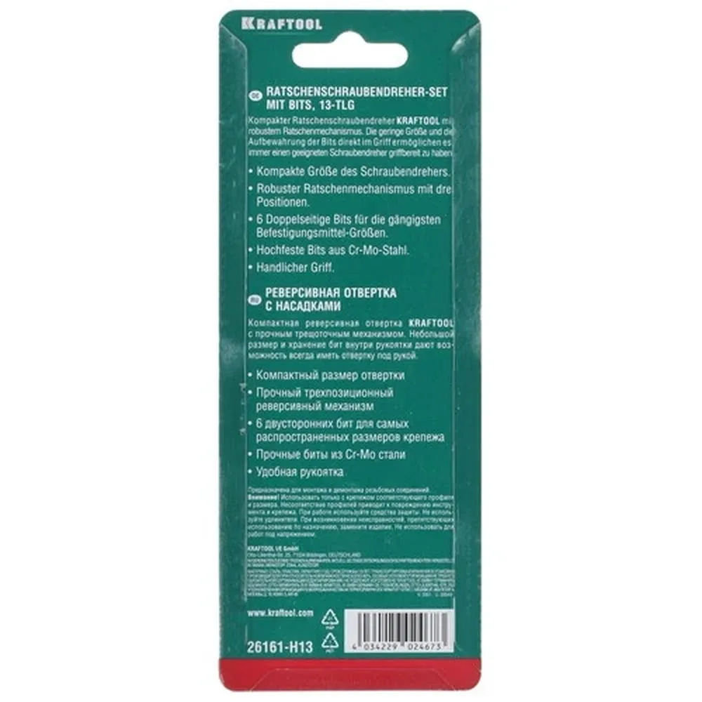Описание товара Отвертка с набором бит Kraftool 26161-H13