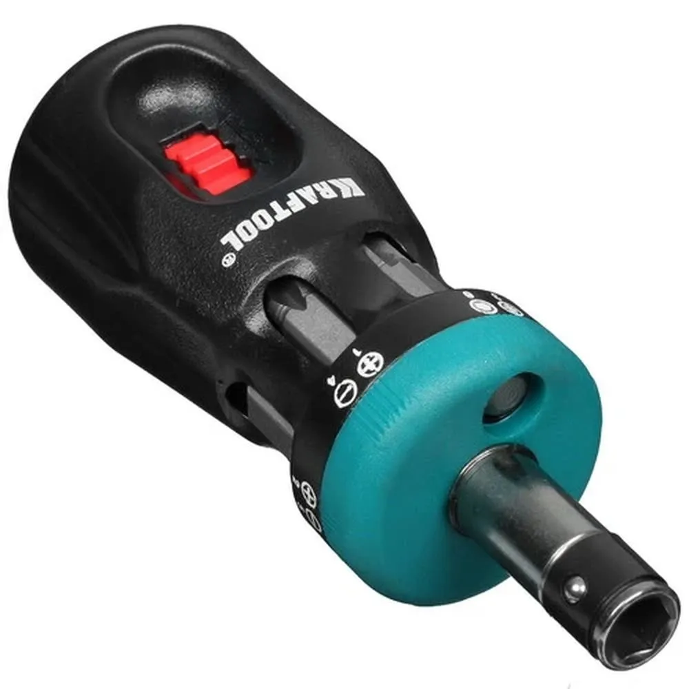 Реверсивная отвертка с битами BIT LOCK 12 в 1 KRAFTOOL 26161-H13 - это отвёртка с 6 длинными двухсторонними битами. Она предназначена для монтажа и демонтажа резьбовых соединений. У отвёртки есть переключатель реверса, в котором имеется три положения: фиксация, откручивание и закручивание. Большое преимущество отвёртки в том, что сменные насадки всегда под рукой - в специальном магазине корпуса рукоятки. Внимание! Товар представлен в разном цветовом оформлении. При заказе выбор невозможен. Цена указана за 1 набор.
