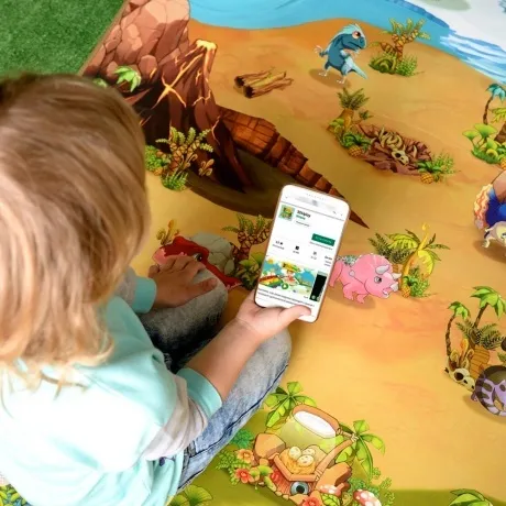 Интерактивный игровой коврик оживает через приложение 3DUplay на мобильном устройстве. Коврик Динопарк перенесет в доисторический мир, населенный его могучими жителями. Дети смогут кормить и выгуливать динозавров, а также узнавать о них интересные факты. Участвуя в раскопках, можно получить монеты и обменять их на редкого динозавра.