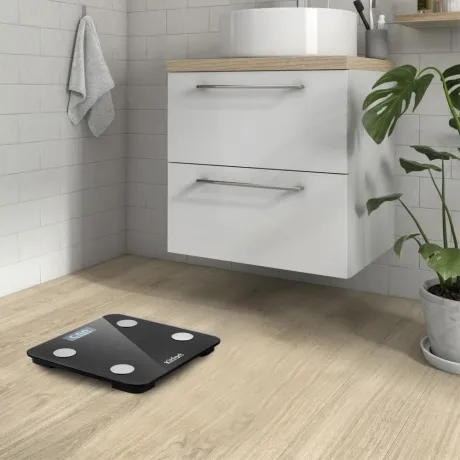Модель КТ-805 представляет поколение умных весов. Они обеспечивают высокую точность измерения и станут неизменным спутником для людей, следящих за весом. На платформе встроены металлические круги, встав на которые проводится диагностика тела. Далее весы легко синхронизируются с приложением «Fitdays» по Bluetooth, где будут отражены показатели вашего тела. Вся информация будет храниться у вас в телефоне.