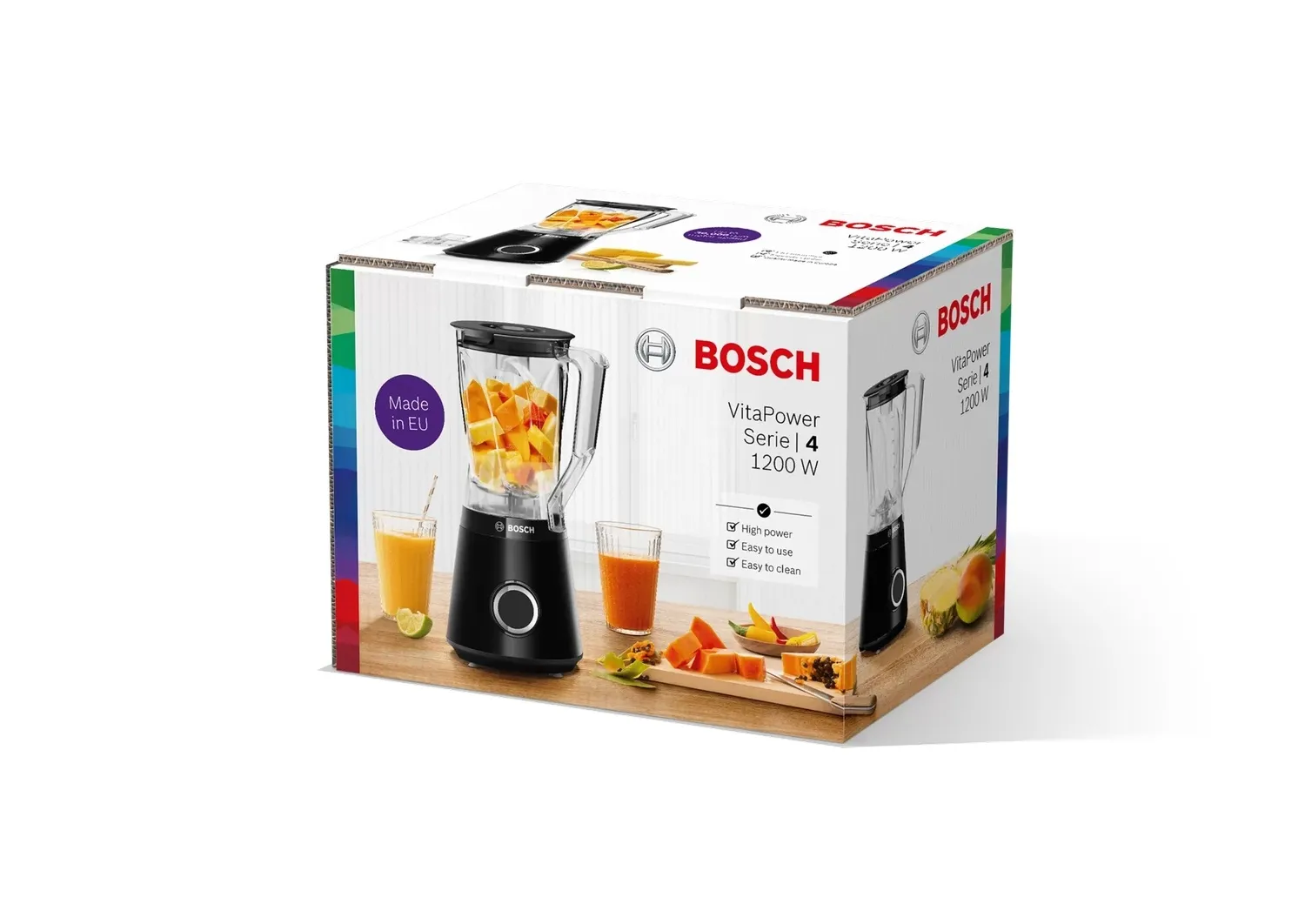 Система Pro-Performance: идеальная текстура смузи даже из замороженных, твердых и волокнистых ингредиентов. Надежный двигатель Bosch: мощность 1200 Вт со скоростью вращения до 30 000 об / мин. Простая сборка и очистка: нож, чашу и крышку можно мыть в посудомоечной машине. Чаша одним движением фиксируется на приборе, а кабель удобно хранится в специальном отсеке. Качественная сборка на собственной фабрике Bosch: долговечность, надежная конструкция и высококачественные материалы. Лезвия ProEdge: блестящие результаты смешивания, благодаря эффективным и прочным лезвиям из нержавеющей стали. Сделаны в Германии.