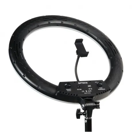 Кольцевой осветитель Falcon Eyes, BeautyLight 480RC LED, Пульт ДУ, Сетевой адаптер с кабелем питания, Держатель смартфона, Руководство по эксплуатации, Гарантийный талон