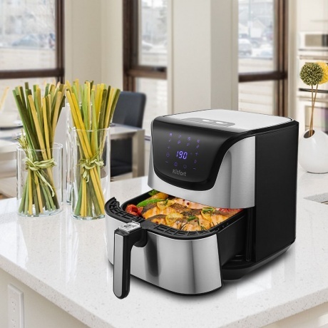 Стильный аэрогриль Kitfort КТ-2232 может использоваться как аэрогриль, а также как аэрофритюрница и духовка и позволяет готовить большинство продуктов с минимальным количеством масла или вовсе без его добавления.