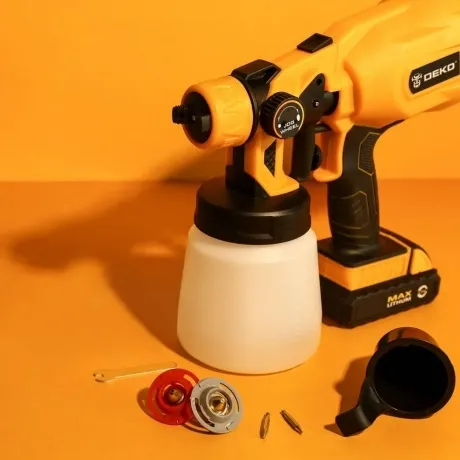 Пистолет-распылитель DEKO DKSG20K2 разработан специально для работ по дому, таких как окраска рабочего стола и стула, окраска заборов, внутренних стен и окраска распылением краски для поделок. Он также подходит для других аэрозольных эмульсионных красок и красок для брызг. Эта модель краскораспылителя DEKO оснащена аккумулятором на 20 В, что обеспечивает удобство беспроводной работы.