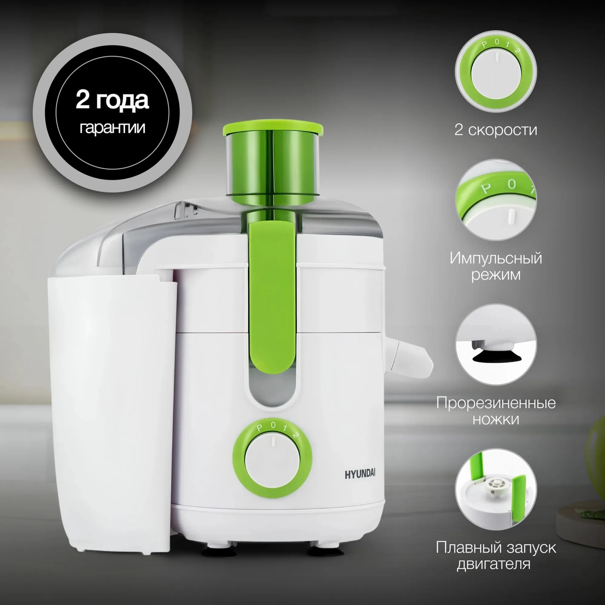 Соковыжималка центробежная Hyundai HY-JE1615 белый/зеленый купить с доставкой в Краснодаре