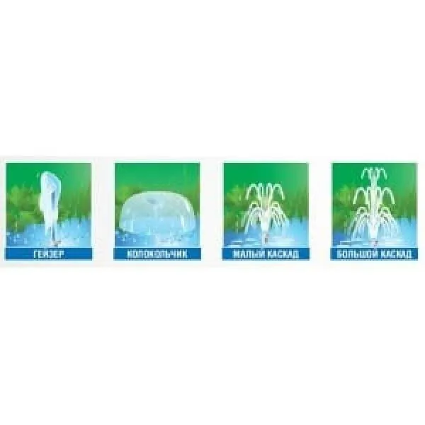Простое средство для украшения сада. Обычный пруд с установкой насоса превращается в фонтан, причем, благодаря сменным насадкам, форма струи легко меняется между гейзером, каскадом и колокольчиком, а также может переключаться на водопад. Таким образом, одно изделие способно изменить Ваш пруд или сад, привнеся в него веселое и успокаивающее журчание воды, под которое так приятно отдыхать после рабочей недели
