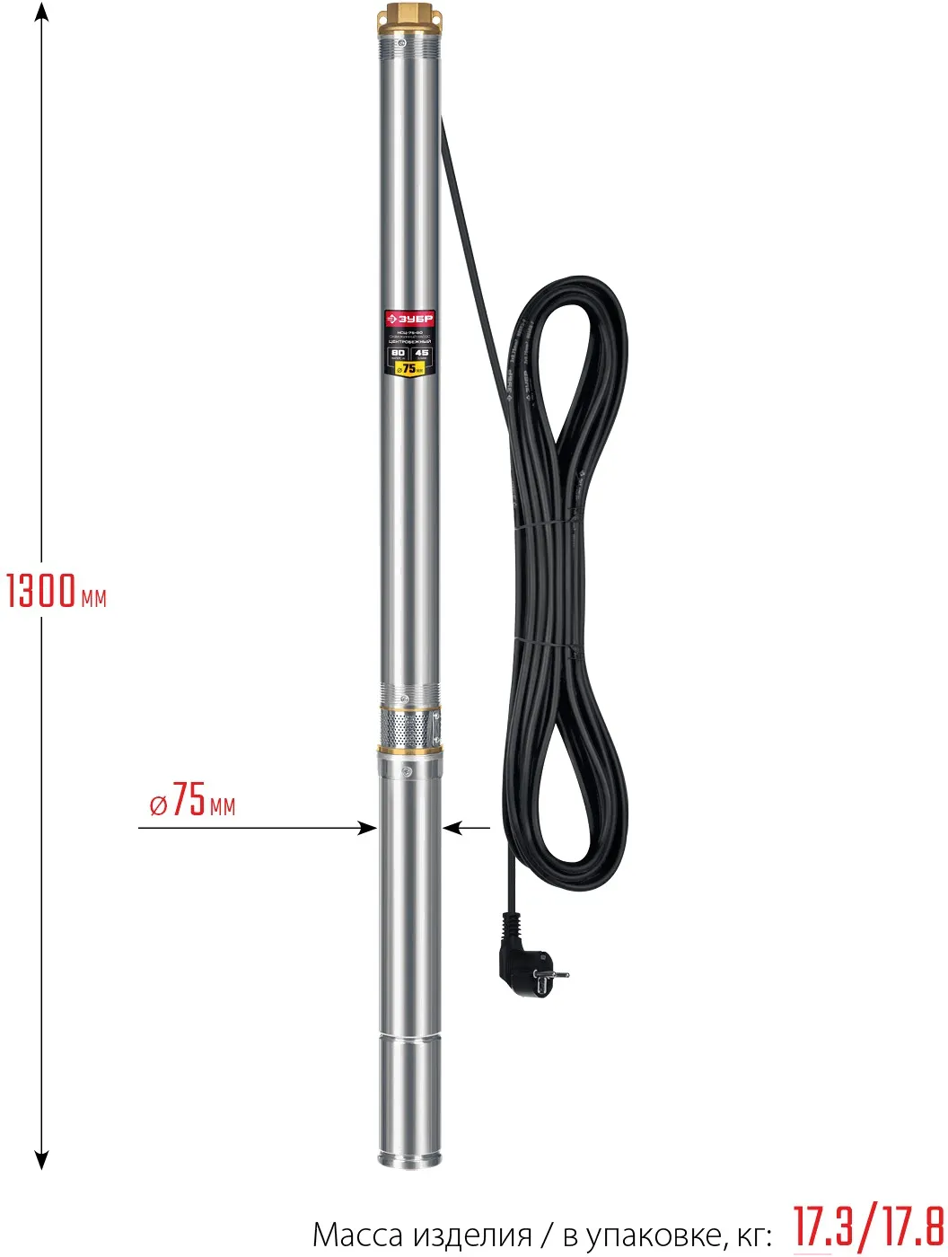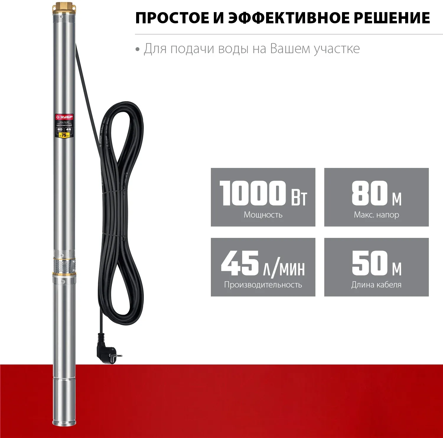 Описание товара Скважинный насос центробежный ЗУБР, 80 м напор