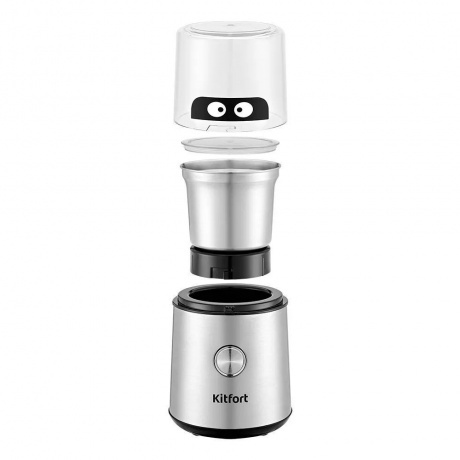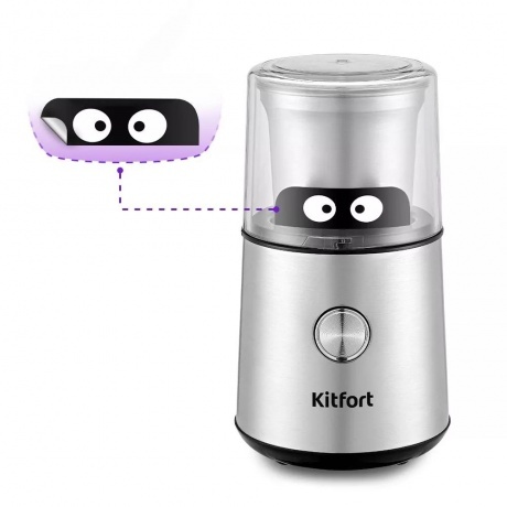 Кофемолка КТ-7123 предназначена для помола кофейных зёрен и измельчения специй. Это несложное в использовании устройство обязательно пригодится любителю кофе! В чаше для кофе установлен нож с двумя лезвиями для качественного помола зёрен кофе. Особенности свежего помола в том, что кофейные зёрна максимально сохраняют свои свойства, и кофе остаётся свежим и вкусным. Кофемолка проста в эксплуатации: она включается при нажатии на кнопку. Пока вы держите кнопку нажатой, устройство продолжает работать. При отпускании кнопки прибор отключится. Устройство включится только при правильно установленной крышке. Поверните по часовой стрелке до фиксации так, чтобы выступ на крышке нажал на защитный переключатель, который находится на моторном блоке. Кофемолка укомплектована двумя прозрачными крышками. Благодаря прозрачной крышке кофемолки вы можете наблюдать за тем, как происходит процесс помола кофе или измельчения специй. Полностью разборная конструкция позволяет легко и быстро очистить кофемолку. На дне есть специальные прорезиненные нескользящие ножки, которые придают прибору устойчивость во время работы. С нашей техникой очень легко подружиться, потому что она не только простая и функциональная, но и будто живая с весёлыми глазами. Никого не оставит равнодушным! В любой момент вы можете отклеить этот стикер без вреда для поверхности.