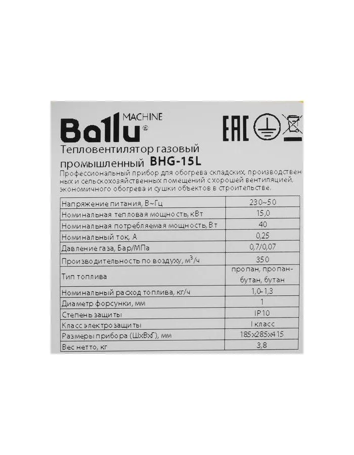 Описание товара Тепловая пушка газовая Ballu BHG-15L
