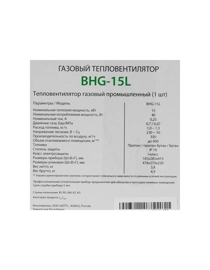 Отзывы о товаре Тепловая пушка газовая Ballu BHG-15L