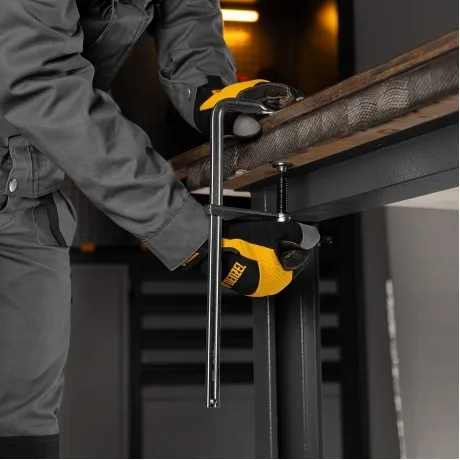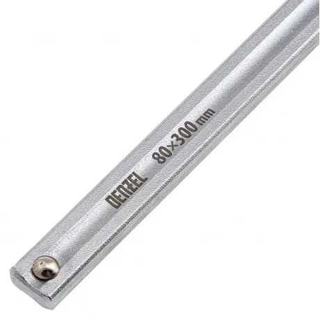 Кованая F-образная струбцина Denzel 20466 с глубиной зажима 80 мм, усиленная, предназначена для фиксации деталей шириной до 300 мм и материалов при проведении слесарных, столярных и сварочных работ. Тавровый профиль обеспечивает устойчивость конструкции к изгибу, что позволяет фиксировать детали со значительным усилием.