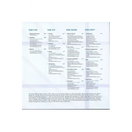 Lightning (From Songs From Liquid Days), Facades (From Glassworks), A Gentlemans Honor (From The Photographer), Primacy Of Number (From Naqoyqatsi), Metamorphosis IV, Open The Kingdom - Liquid Days, Part II, Dance II (From In The Upper Room), Dance VIII (From In The Upper Room), Glasspiece