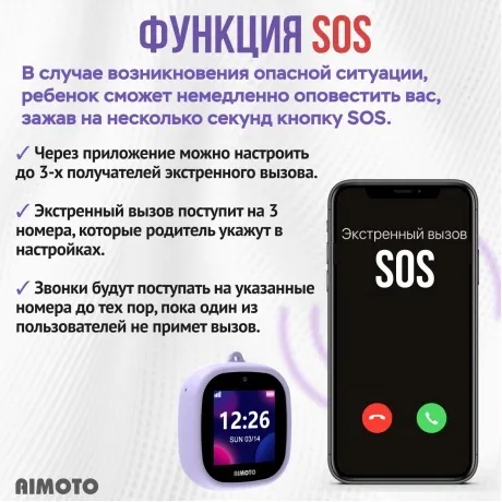 Описание товара Детские умные часы Aimoto Crystal 4G Violet