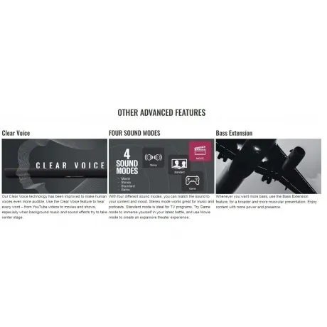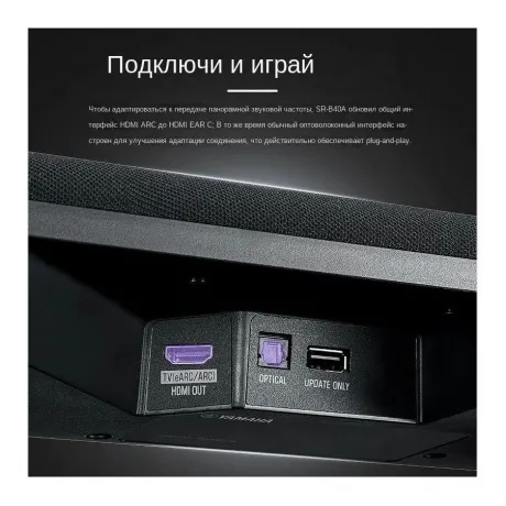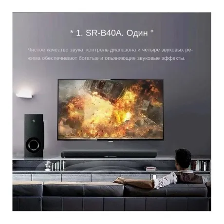 Саундбар Yamaha SR-B40A с выходной мощностью 100 Вт и активным сабвуфером формируют насыщенное звучание с объемным эффектом для погружения в просмотр. Устройство синхронизируется с телевизором по технологии Bluetooth.