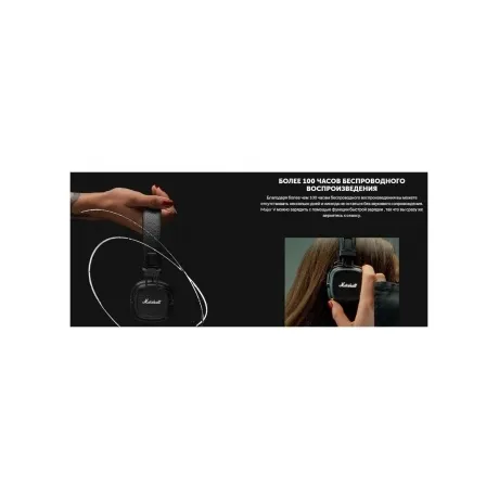 Наушники Marshall Major V имеют частотный диапазон 20 Гц - 20 000 Гц и выдают насыщенное и сбалансированное звучание. Импеданс 32? обеспечивает стабильное качество звука при использовании со смартфонами или ноутбуками. Bluetooth 5.3 моментально подключает наушники к различным устройствам в радиусе до 10 метров. Поддержка беспроводной и быстрой зарядки экономит время и позволяет зарядить наушники без необходимости искать кабель. Время работы Marshall Major V на одном заряде составляет до 100 часов.