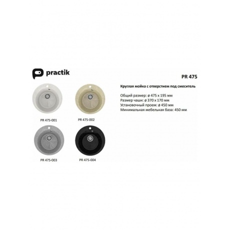 Описание товара Мойка Practik белый камень (PR-M 475-001)