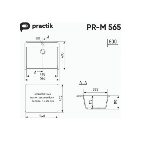 • Мойка Practik белый камень (PR-M 565-001) - фото 5