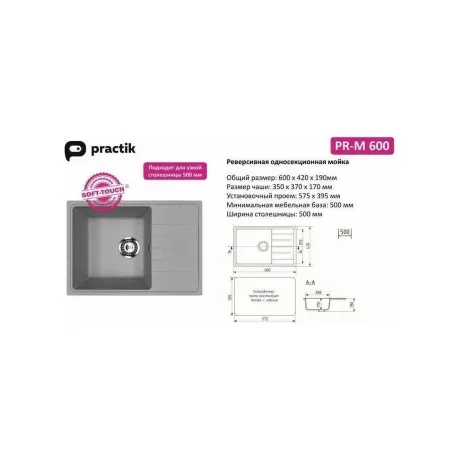 Описание товара Мойка Practik светло-серый (PR-M 600-003)