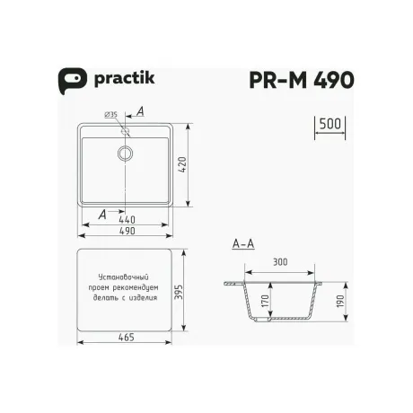 Компактная квадратная мойка Practik PR-490 с отверстием под смеситель великолепно подходит подходит для малогабаритной кухни. Особенностью мойки является возможность ее установки на узкую столешницу шириной 50 см, при этом ширина шкафа (мебельная база) также идет от 50 см. Материал мойки представляет из себя искусственный камень, который является композитом на основе натурального мрамора и связующих смол. Искусственный камень существенно снижает уровень шума при падении струи воды. Специальное покрытие гелькоут защищает поверхность мойки от загрязнений и бытовых царапин, делая уход за мойкой легким и простым.