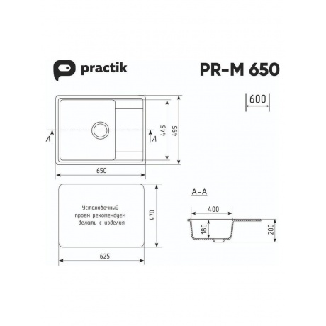 Классическая односекционная реверсивная мойка Practik PR-650 с плоским крылом является оборачиваемой - крыло может располагаться как справа, так и слева. Материал мойки представляет из себя искусственный камень, который является композитом на основе натурального мрамора и связующих смол. Искусственный камень существенно снижает уровень шума при падении струи воды. Специальное покрытие гелькоут защищает поверхность мойки от загрязнений и бытовых царапин, делая уход за мойкой легким и простым. Данная мойка устанавливается в шкаф от 60 см и дает возможность осуществить монтаж мойки в стандартную столешницу шириной 60 см.