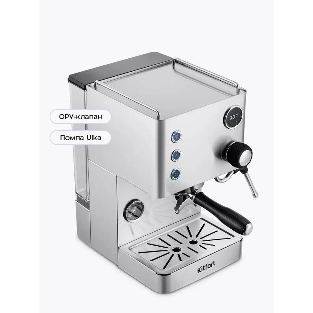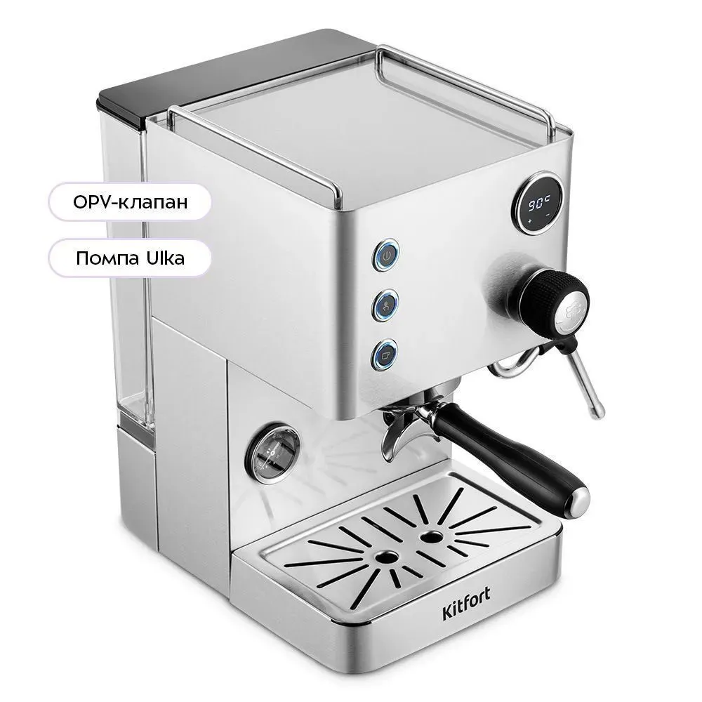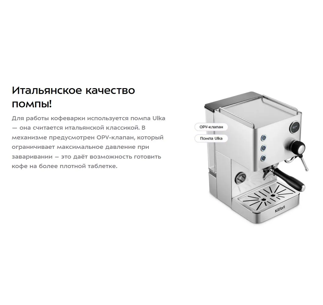 Кофеварка рожковая Kitfort КТ-7510 - описание товара, его характеристики, фото и цены представлены на карточке товара. Чтобы купить этот товар по цене 45990 руб., свяжитесь с нами по телефону 8(800)505-43-75 в Краснодаре, или оформите покупку через корзину.