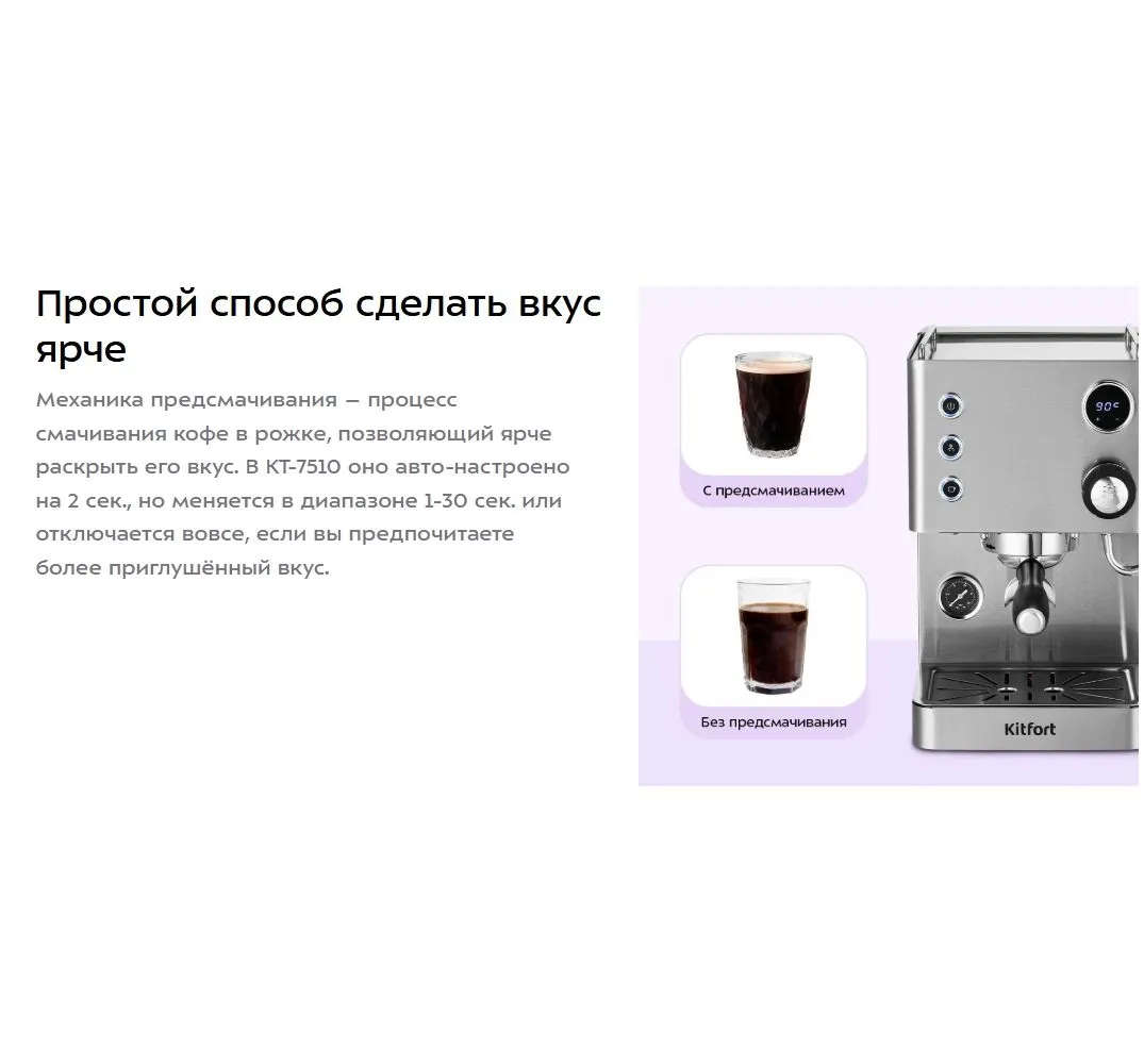 Описание товара Кофеварка рожковая Kitfort КТ-7510