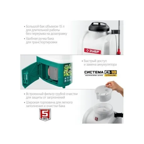 Опрыскиватель аккумуляторный ЗУБР 15 л, (ОПЛ-15) - характеристики, описание товара, фото и цены представлены на карточке товара. Этот товар вы можете купить по цене 5595 руб., позвонив по телефону 8(800)505-43-75 в Краснодаре, или оформив покупку через корзину.