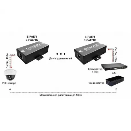 Описание товара Удлинитель Osnovo E-poe/1