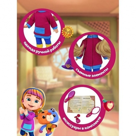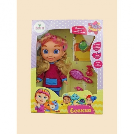 Кукла Есения – образ девочки-«химика», главной героини Волшебная лавка Есении, которая создает снадобья и разучивает новые заклинания. Но, увы, маленькая волшебница очень любит экспериментировать, да и просто слишком непоседлива, чтобы сделать все правильно, а потому ее волшебство иногда оборачивается в неожиданную сторону. Размер куклы - 29 см, удобный для детской игры. У игрушки длинные густые волосы, как настоящие, на которых можно заплетать различные прически, укладывать локоны, расчесывать и мыть в воде. Голова и ручки выполнены из приятного на ощупь винила, туловище и ноги из плотной пластмассы. Глаза и брови нарисованы, выражение лица позитивное и доброжелательное, как у главной героини мультфильма. Комплект одежды Есении состоит из: свитшота, лосин, носочек, ободка, обуви. Костюм максимально приближен к оригинальному наряду из мультфильма Волшебная лавка Есении. Игрушка упакована в тематическую упаковку, в комплекте к ней идут аксессуары (зеркальце, духи и расческа) и книга заклинаний. Книга заклинаний – важный атрибут в жизни каждого мага, у Есении он особенный. Часть заклинаний из мультсериала уже вписаны, осталось вписать свои волшебные фразы, интересные мысли и добрые пожелания. Кукла соответствует Техническому регламенту Таможенного Союза о безопасности игрушки.