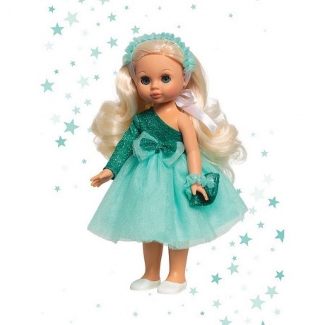Кукла Эля Праздничная 7 может стать настоящей подружкой для ребёнка. Ее милый образ девочки с длинными, блестящими волосами и в воздушном платье придется по душе вашим детям. Наряд включает в себя: платье с пышной юбкой и бантом, белые туфельки, ажурная повязка на голову, сумка-клатч и трусики. Игровые возможности куклы: наличие элементов одежды, которые легко снимаются и надеваются, разнообразит возможности сюжетно-ролевых игр с этой куклой, в процессе которых развивается мелкая моторика и творческое воображение ребёнка. Прекрасные прошитые волосы из качественного нейлона, похожие на натуральные, можно завивать, расчёсывать, укладывать в разные причёски, меняя образ куклы. Рост куклы 30 см. Кукла Эля не озвучена. Глаза вставные закрывающиеся. Цвет глаз может варьироваться. Ручки и голова выполнены из эластичного, приятного на ощупь винила, а туловище и ноги из пластмассы. Соответствует Техническому регламенту Таможенного Союза о безопасности игрушки.