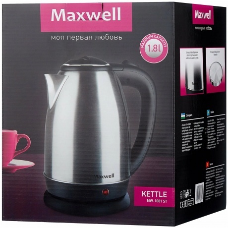Надёжный и практичный электрочайник MAXWELL MW-1081 ST выполнен из нержавеющей стали. Очень простой в использовании, он оснащён специальными функциями безопасности - автоматическим отключением после закипания и недостаточном кол-ве воды. Конструкция обеспечивает вращение корпуса на 3600. Прибор имеет скрытый нагревательный элемент и эргономичную ручку с кнопкой включения. Оптимальный объём (1,8 л) и стильный внешний вид - вот главные преимущества этой модели!