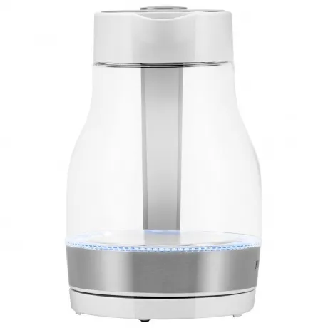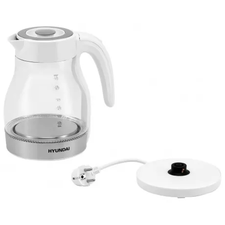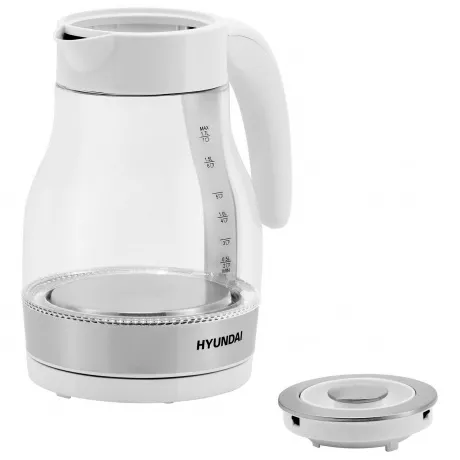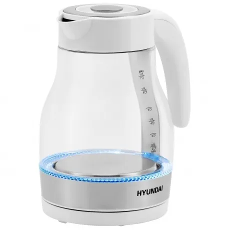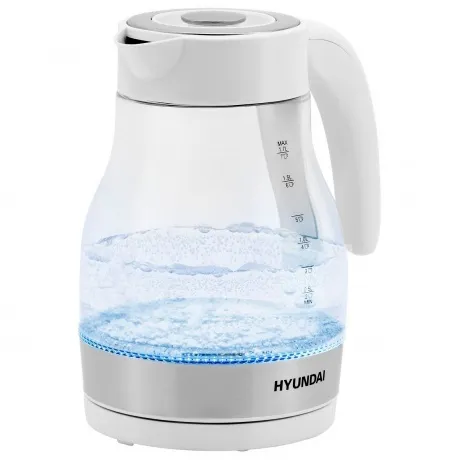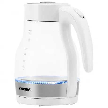 Чайник Hyundai Kettle Hyundai HYK-G3802 – эффектная модель, пользующаяся достаточно большой популярностью. Колба из термостойкого стекла абсолютно прозрачная, через нее можно наблюдать за процессом закипания воды. По нижнему краю корпуса расположена светодиодная подсветка нежного голубого оттенка, которая превращает танцующие пузырьки в незабываемое зрелище, за которым можно наблюдать часами. Скрытый нагревательный элемент снижает уровень образования накипи. Крышка оборудована автоматической блокировкой, что обеспечивает безопасность в процессе использования. Вытянутый носик направляет струю четко в чашку и исключает разбрызгивание горячей жидкости. Платформу можно поворачивать на 360 градусов и за удобную ручку снимать чайник с платформы.
