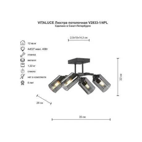 Люстра V2833-1/4PL, 4xE27 макс. 40Вт - по цене 4197 руб. в Краснодаре. Приобрести товар можно в интернет-магазине КотоФото на сайте, либо по телефону 8(800)505-43-75 в Краснодаре. Информация о характеристиках и описании указана в карточке товара.
