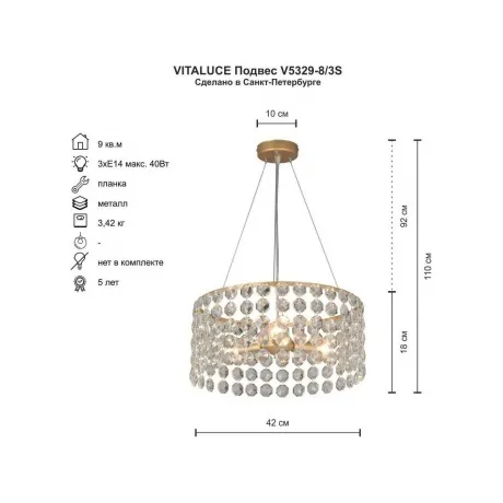 Купить Люстра V5329-8/3S, 3xE14 макс. 40Вт - по цене 11790 руб. в Краснодаре с доставкой или самовывозом. Заказ можно оформить на нашем сайте kotofoto.ru или по телефону 8(800)505-43-75. Вы можете забрать товар в одном из пунктов самовывоза в Краснодаре или оформить доставку на дом в удобное для Вас время.