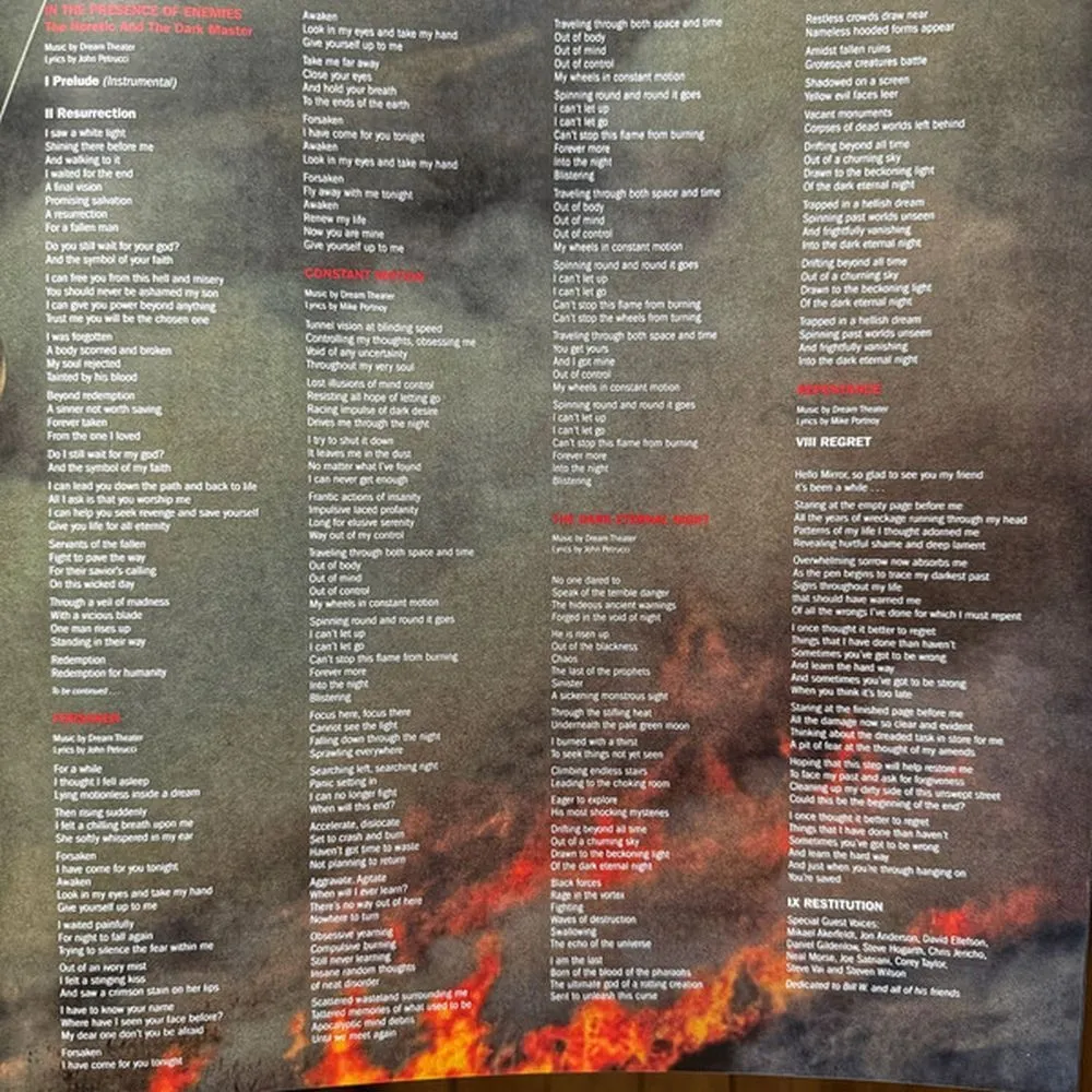 In the Presence of Enemies (Part 1), Forsaken, Constant Motion, The Dark Eternal Night, Repentance, Prophets of War, The Ministry of Lost Souls, In the Presence of Enemies (Part 2)