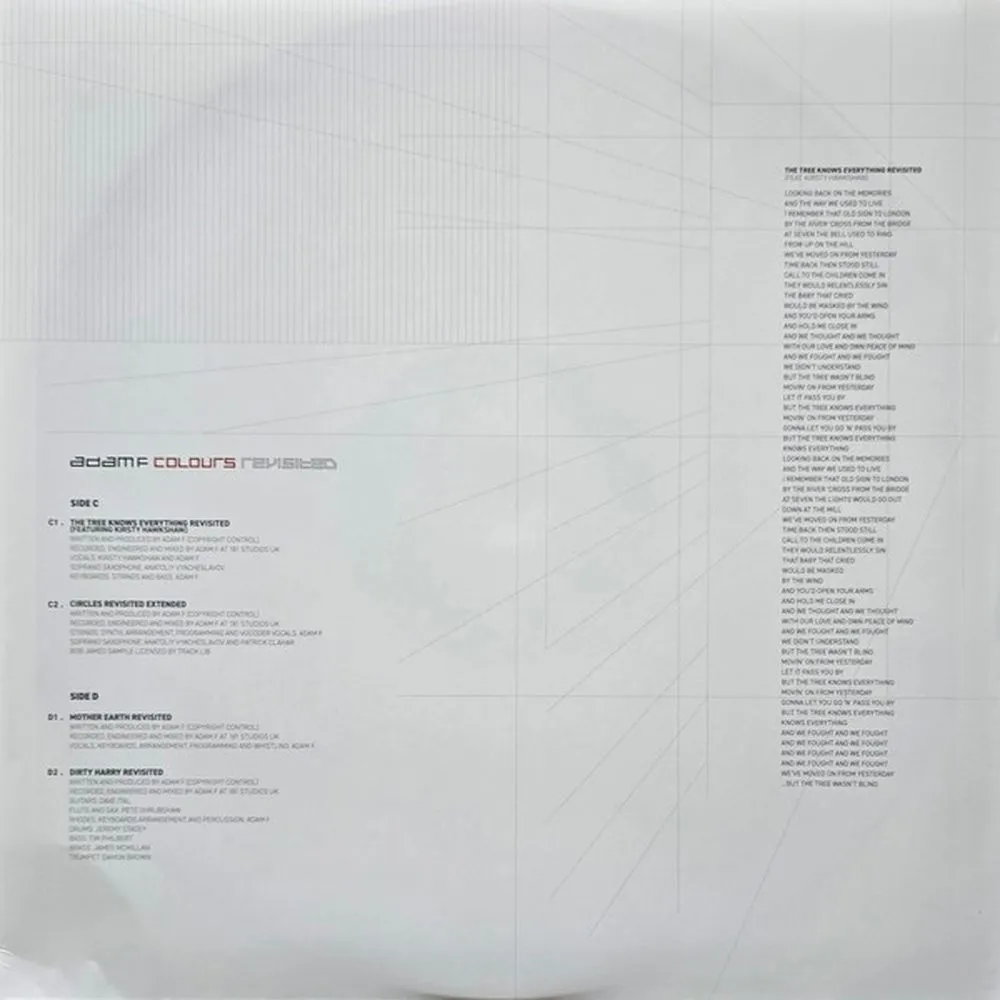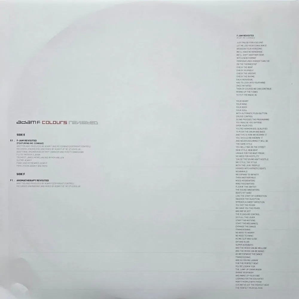 «Colours Revisited», переработанная версия дебютного альбома Адама Ф. 1997 года, удостоенного премии MOBO, — это история музыкального возрождения и страсти. Адам Ф., понимая, что «Colours» обрел новую аудиторию — отчасти благодаря таким артистам, как PinkPantheress, — решил переиздать альбом. Вместо простого ремастеринга треков, Адам взялся за дело всерьез. В течение двух лет он кропотливо перерабатывал оригинальную музыку, от восстановления винтажных инструментов, таких как его пианино Fender Rhodes, до привлечения легенд британского джаза, таких как Джулиан Джозеф. Вокалисты, включая Кирсти Хокшоу и покойного MC Conrad, перезаписали свои партии, а новые соло от музыкантов мирового класса вдохнули в треки новую жизнь.
