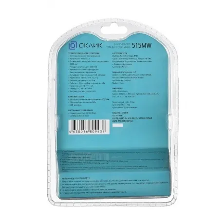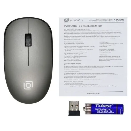 Мышь беспроводная Oklick 515MW с компактным черным корпусом удобно использовать с ноутбуком. Манипулятор оснащается миниатюрным USB-ресивером, который подключается к компьютерному порту и поддерживает связь с мышью на расстоянии до 10 метров. Для питания малогабаритной беспроводной мыши Oklick 515MW используется всего 1 батарейка типа АА. Корпус мышки с покрытием из матового пластика отличается полной симметричностью, поэтому управлять ей удобно как правой, так и левой рукой.