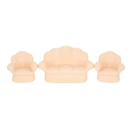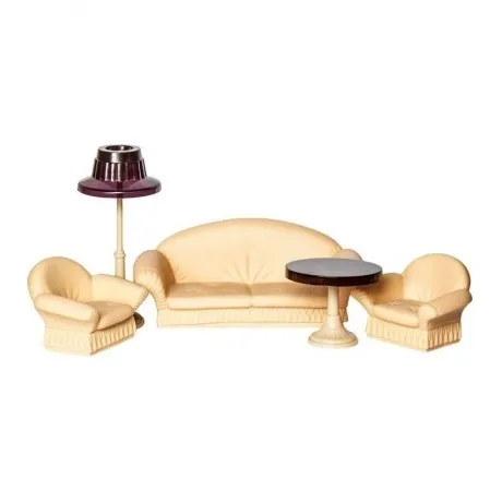 Набор мягкой мебели для гостиной Коллекция станет украшением любой кукольной комнатки. Кресла и диван выглядят как красивая мягкая мебель. Торшер и столик добавят уюта гостиной. Набор способствует развитию детской фантазии, эстетического вкуса, логического и образного развития ребенка. Набор мебели для кукольной комнаты подойдет для кукол размером около 20 см.